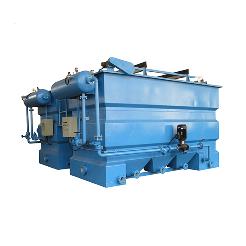 溶气浮选是一种去除油脂、油及其它细小悬浮物,降低COD和BOD的工艺。使用气泡浮选。空气被溶解在水中,溶解的空气产生的饱和水微气泡附着在固体表面,轻固体(比水密度低)将其提升到表面分布在整个槽宽,确保最佳固液分离效果。机械撇渣机用来去除浮渣层,净化后的废水排入下道工序。